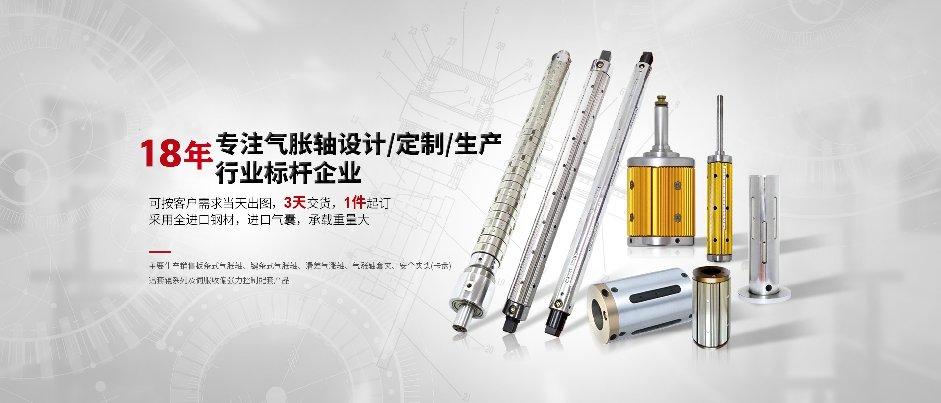 天機匯集各種類型氣脹軸,安全卡盤、氣漲夾套、斷電剎車、CNC零件加工,規(guī)格齊全,庫存充足、大量現(xiàn)貨,廠家直發(fā),完善的物流(順豐、速爾、德邦、郵政)服務(wù)體系,免費送貨上門。