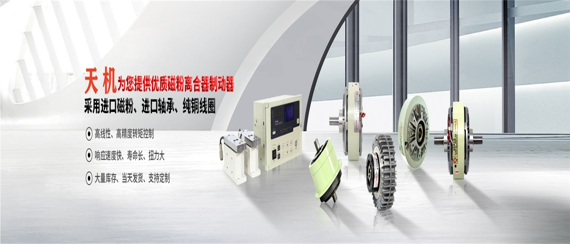 東莞天機通信科科技有限公司創(chuàng)建于2005年,位于廣東制造名城--東莞市,是一家專注于工業(yè)離合器、制動器的研發(fā)、生產(chǎn)和銷售的企業(yè)。 我們的產(chǎn)品包括:電磁離合器、電磁制動器、磁粉離合器、磁粉制動器、張力控制器、糾偏一體機、氣脹軸,安全夾頭等。